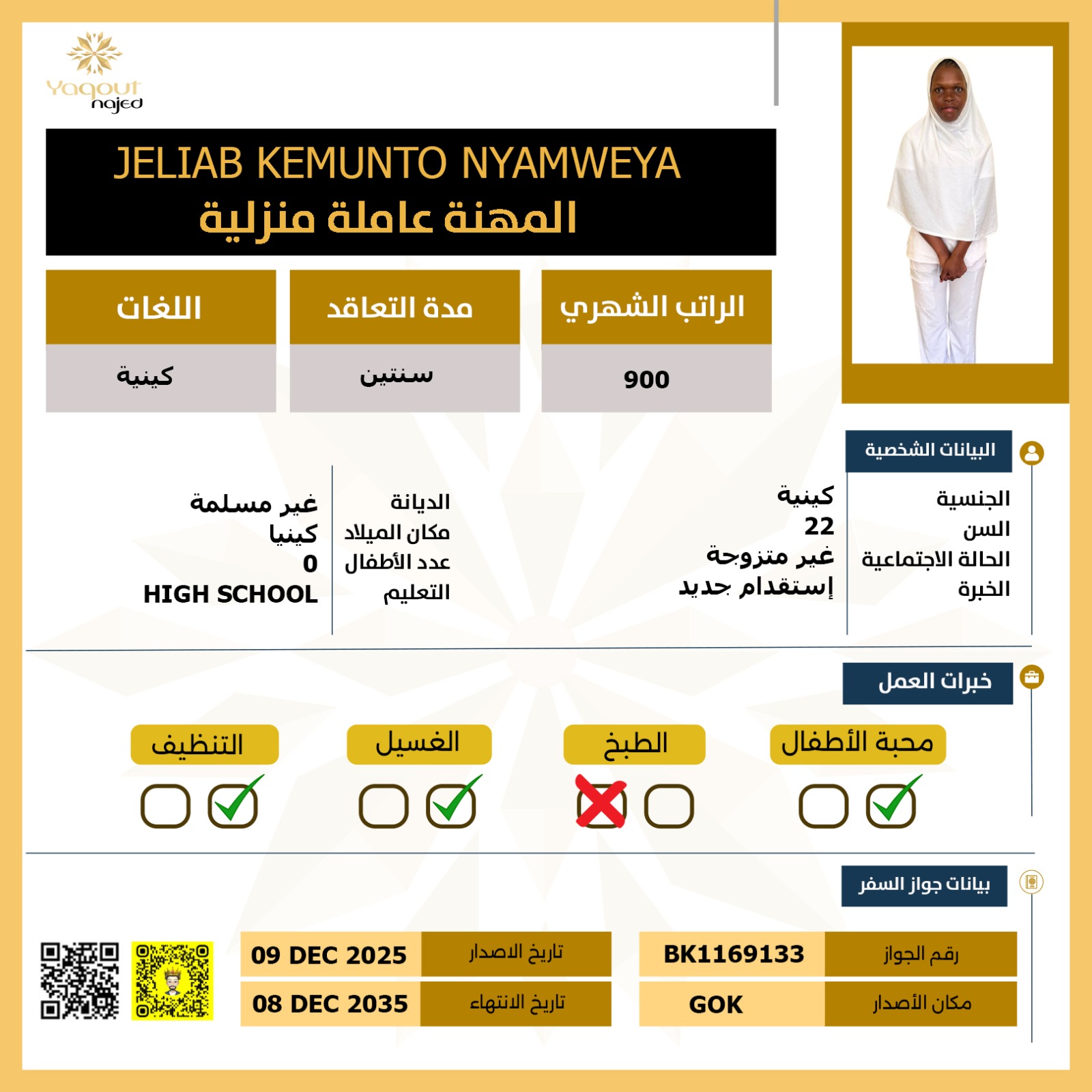 استقدام عاملة كينية تجيد اللغة الانجليزية وتمتاز بسرعة تأقلمها مع ظروف العمل والبيئة الجديدة الذكاء العالي الذي يمكنها من فهم مختلف الأعمار وكافة التلميحات.