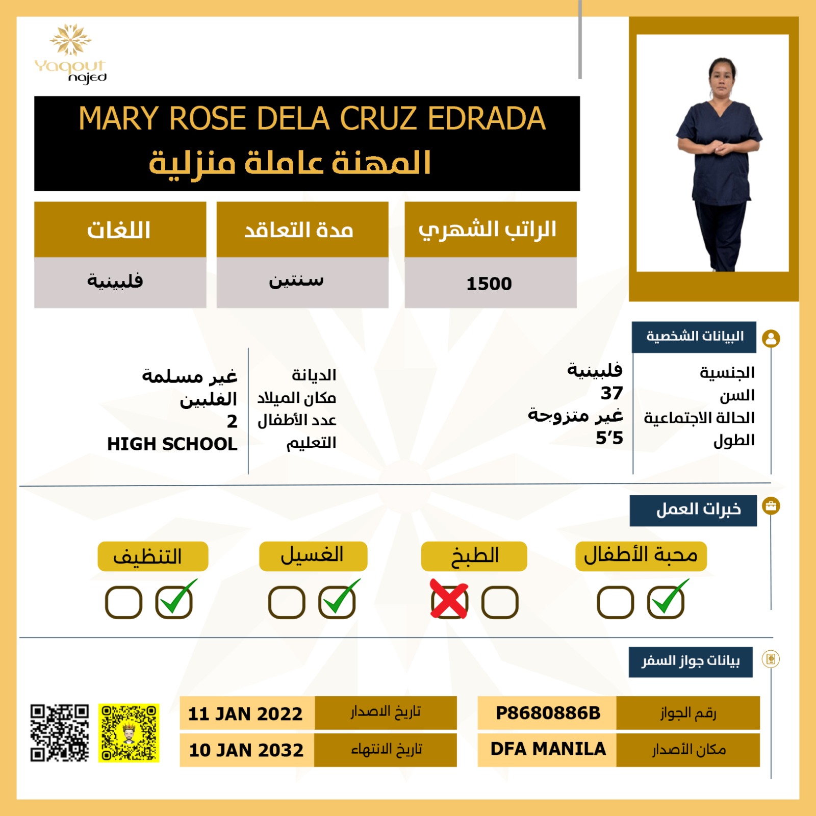 مواصفات العاملة: