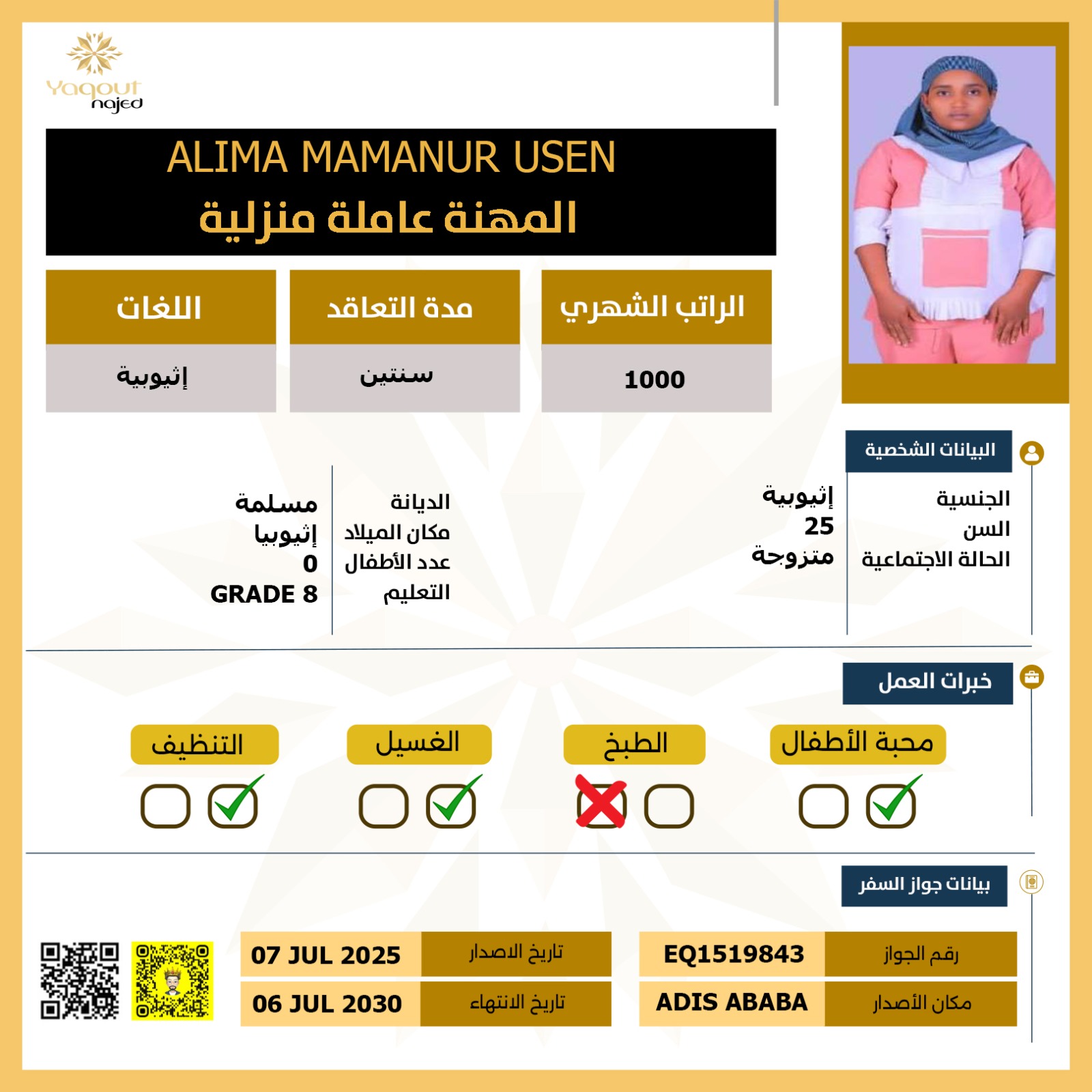 مواصفات العاملة: