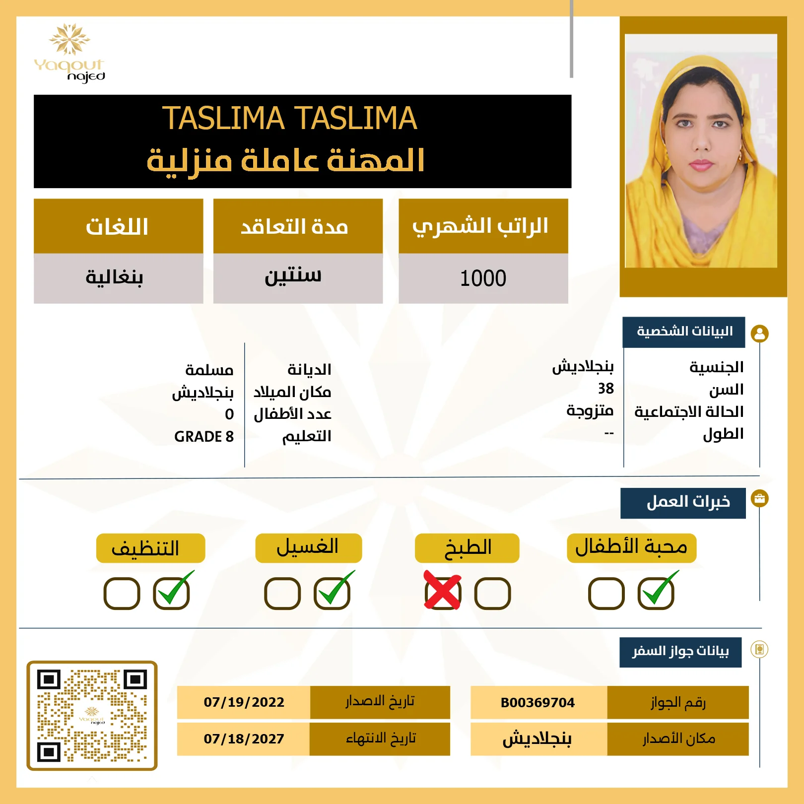 تمتاز عاملات مكتب ياقوت نجد من بنجلاديش بكفائتها وأسعار الاستقدام المنافسة والمغرية.
