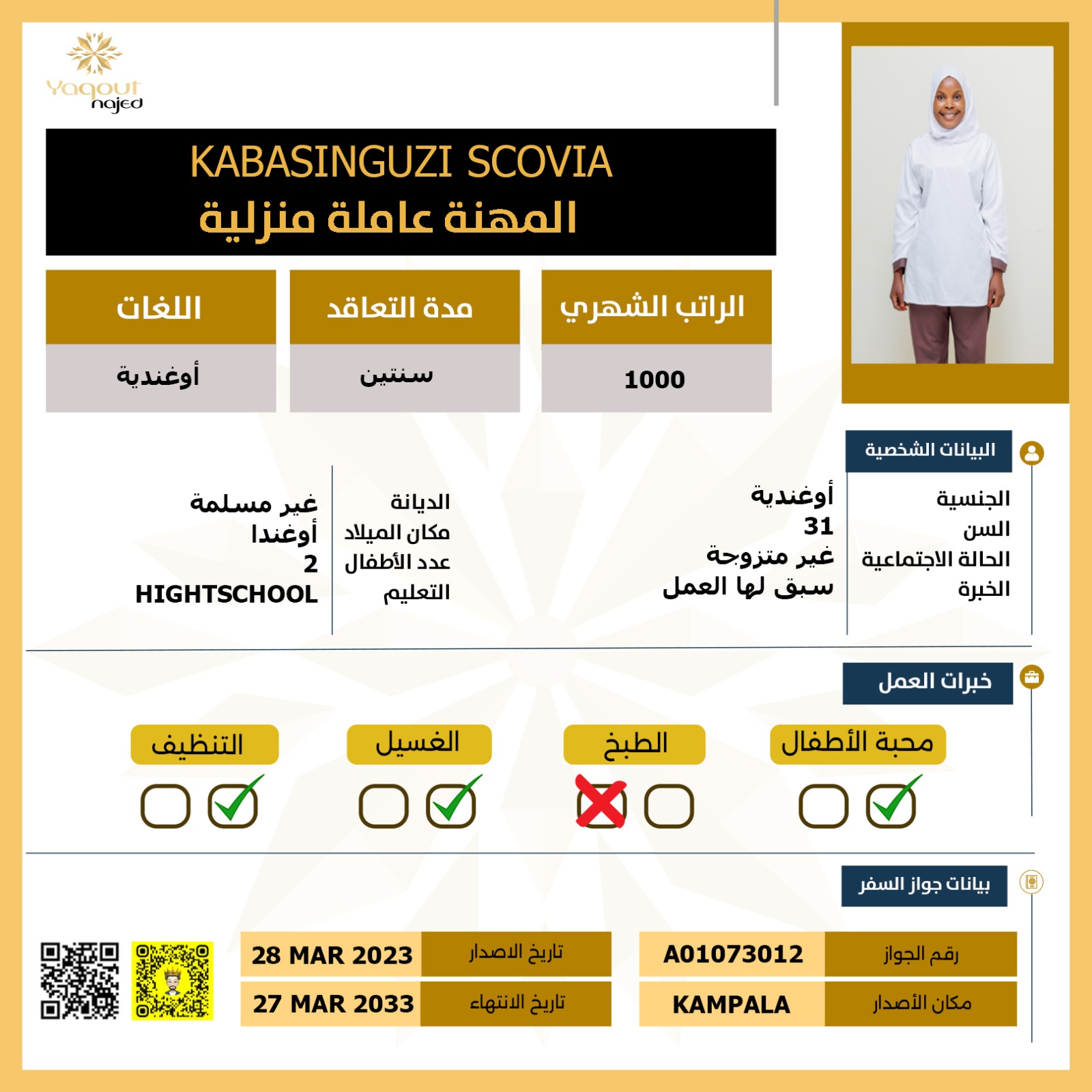 استقدام عاملة أوغندية تجيد اللغة الانجليزية وتمتاز بسرعة تأقلمها مع ظروف العمل والبيئة الجديدة الذكاء العالي الذي يمكنها من فهم مختلف الأعمار وكافة التلميحات.