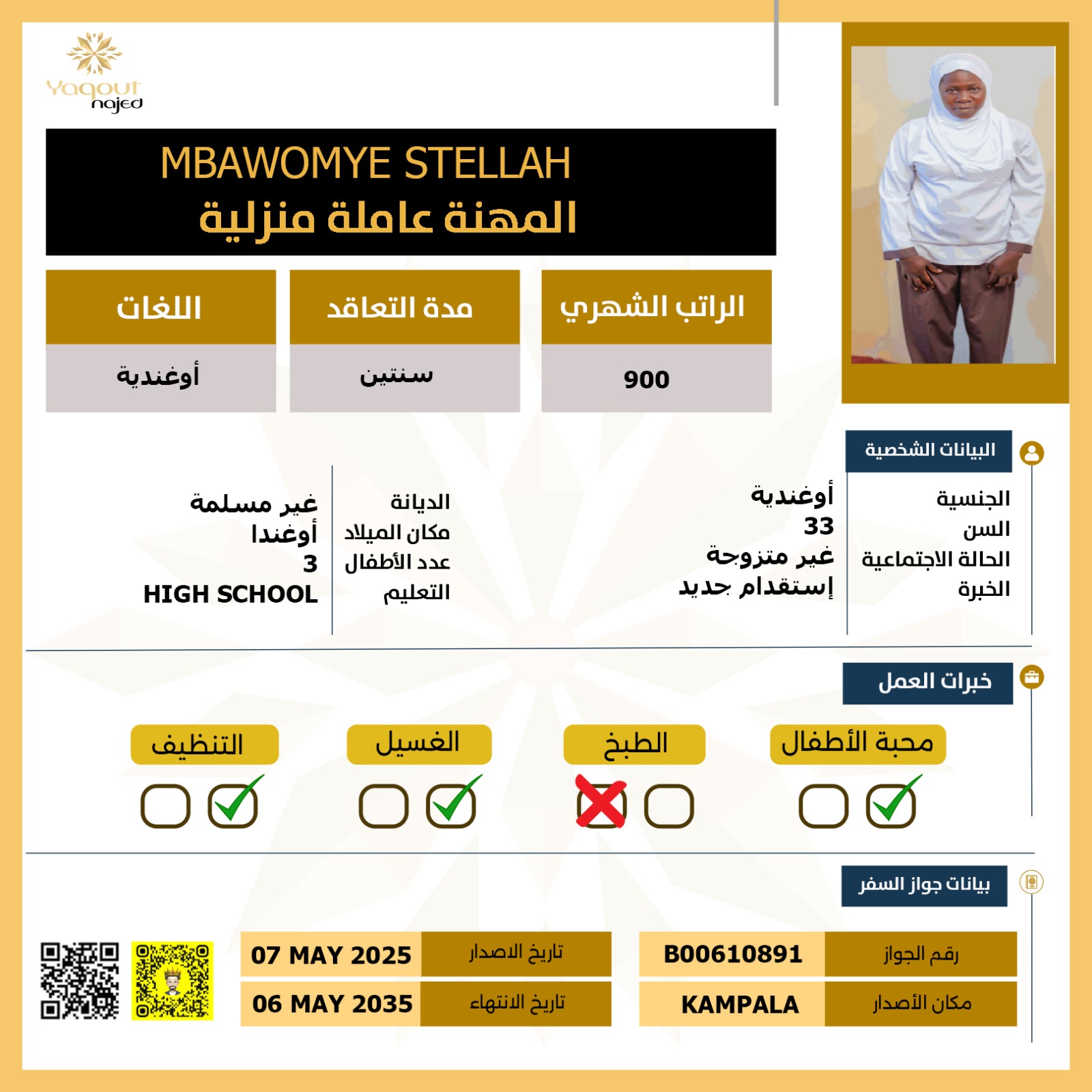 استقدام عاملة أوغندية تجيد اللغة الانجليزية وتمتاز بسرعة تأقلمها مع ظروف العمل والبيئة الجديدة الذكاء العالي الذي يمكنها من فهم مختلف الأعمار وكافة التلميحات.