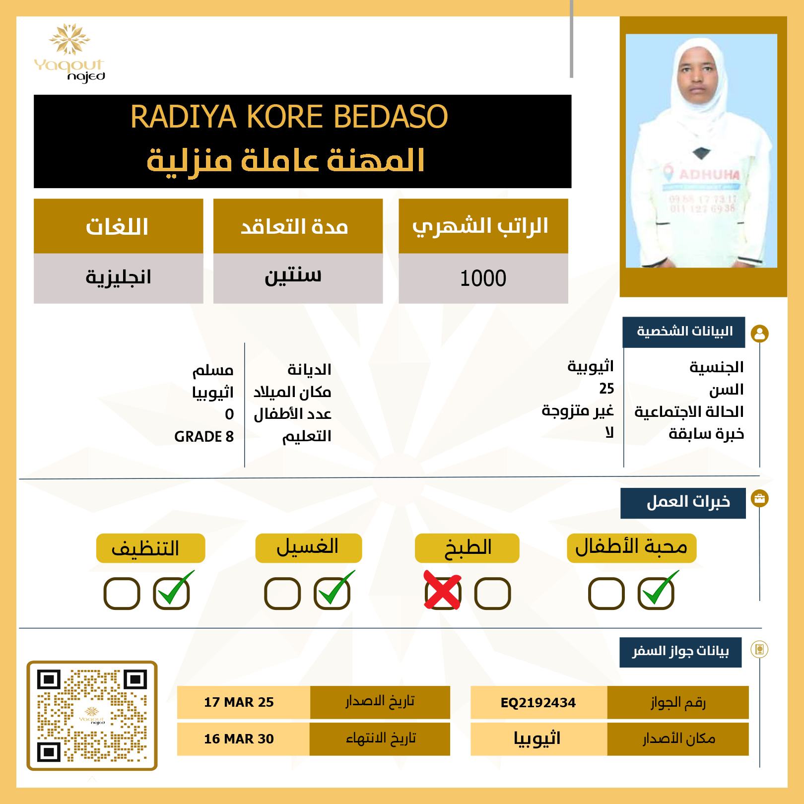 استقدام عاملة اثيوبية مدربة ومختارة بعناية تصلك خلال فترة قياسية عبر مكتب ياقوت نجد للاستقدام
